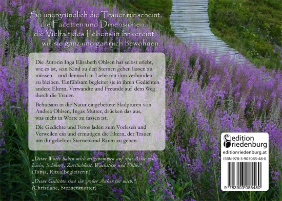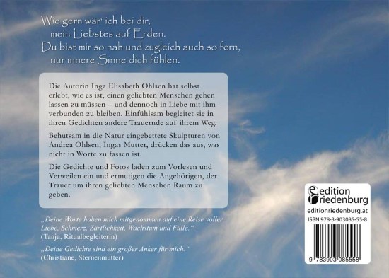 Die Gedichte sind in der Zeit der Trauer um meine erste Tochter Lahja Marlene entstanden, die einen Tag nach ihrer Geburt aus unbekannter Ursache starb. In Momenten der intensiven Gefühle kamen Worte und Bilder zu mir. In ihnen schwingen das Unfassbare und die tiefe Traurigkeit, vor allem aber sind sie Ausdruck der großen Liebe, die weiter da ist und gelebt werden will. So geben die zarten Gedichte Raum zum Spüren der eigenen Gefühle. Die Bilder von den Tonskulpturen meiner Mutter in der Natur laden zum Verweilen ein.